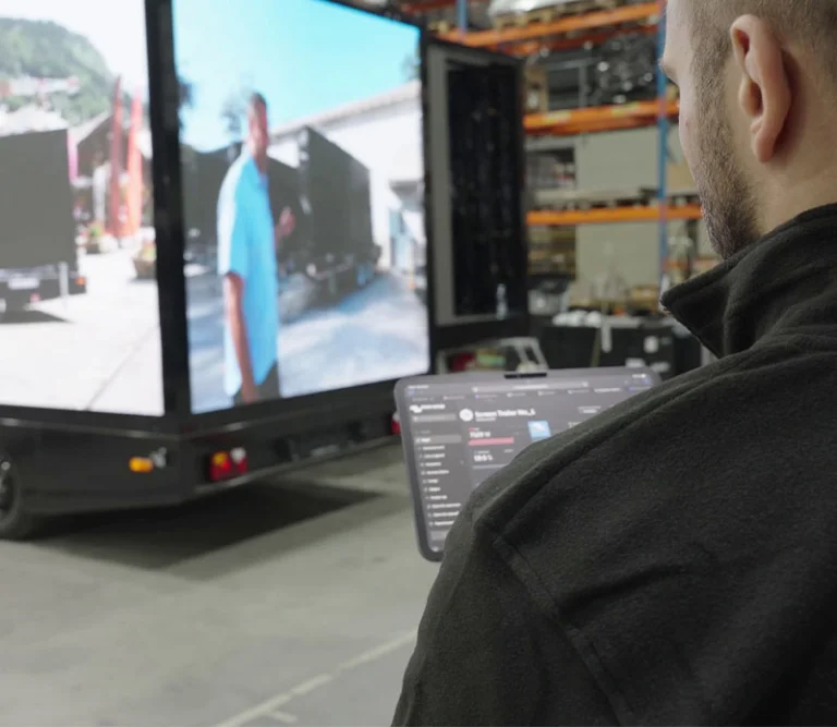Les écrans Truck LED (Unilumin URM III, P3.9) sont conçus pour fonctionner même sous la lumière la plus intense. Ils peuvent supporter des températures allant jusqu'à +50°C, ce qui rend même les journées les plus chaudes de l'été sans problème pour eux.